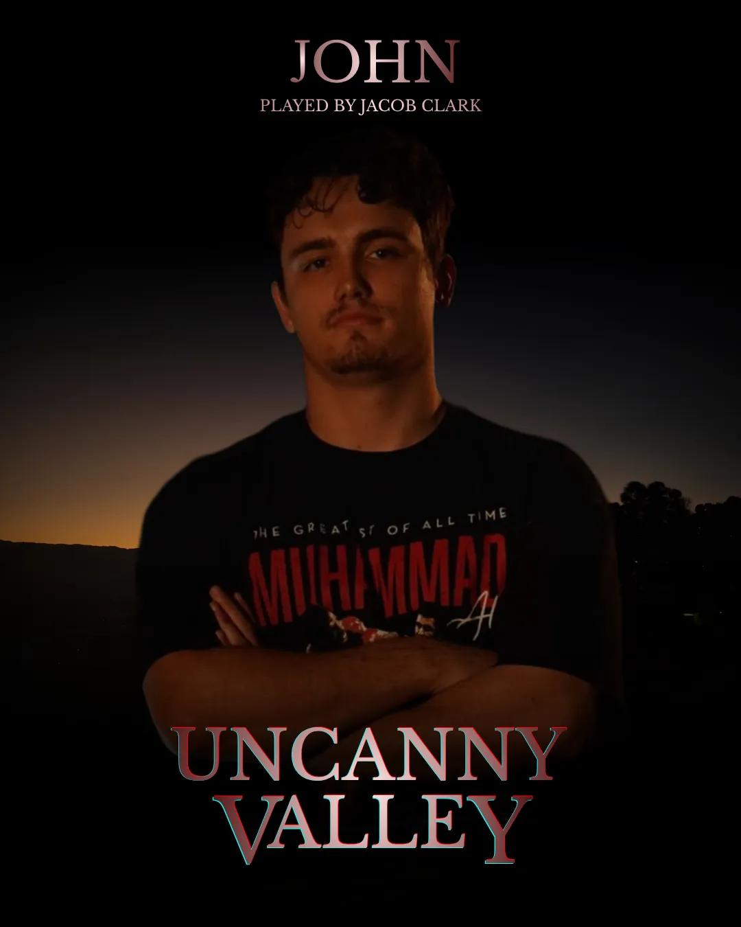 - Jacob Clark (Actor – John) A seasoned stage performer since 2019, Uncanny Valley marks Jacob’s official short-film debut as he transitions from stage to screen and expands his portfolio into film and television.